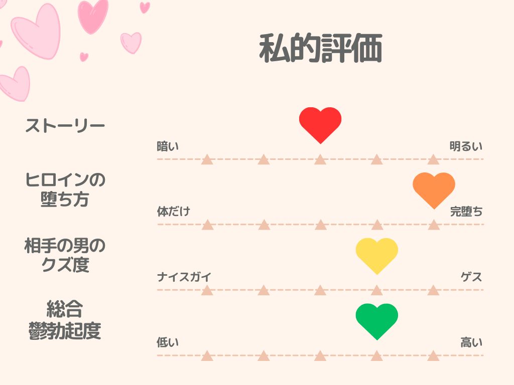 背が高いことがコンプレックスで内気な性格の爆乳女子高生・リンちゃん。そんな彼女に淡い恋心を抱き見守る幼馴染のヒロくん。しかしリンちゃんがヤリチンのカズキ先輩のことを好きになってしまい、ふたりの関係は変わっていきます。リンちゃんの告白を受け、カラダ目当てで付き合うことにしたカズキ先輩。リンちゃんはカズキ先輩にバチボコ犯されます。健気なリンちゃんがカズキ先輩に肉便器扱いされイキまくる姿は激シコです。普段の控えめな可愛い笑顔と、メス豚アヘ顔とのギャップが凄いです。そんな扱いをされながらもリンちゃんは益々カズキ先輩のことが好きになっていき、ヒロくんの手の届かない存在になってしまう様子は、鬱勃起不可避。